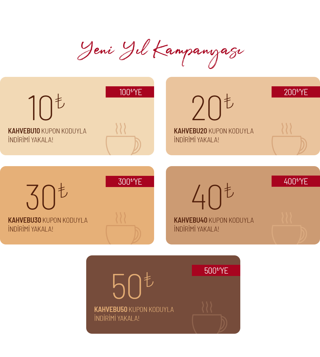 1- Yukarıdaki İndirim Kuponları, COFFEEBOU.com online satış mağazamızdan yapacağınız alışverişler için geçerlidir.