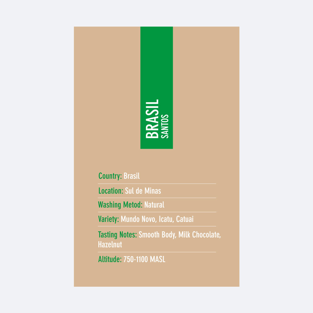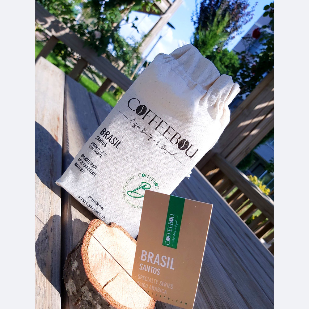 Brasil Santos ismini, dünyanın önemli kahve üreticilerinden olan Brezilya’nın São Paulo’da bulunan Santos kahve limanından alır. Brezilya’nın en iyi kahve çiftliklerinden hasat edilen Coffeebou Brasil Santos Kahve Çekirdeği, 17/18 elek boyu ölçeğindedir. Sul De Minas Bölgesinde, 1200 metrenin altında yetişen kahve kirazı hızlı bir şekilde olgunlaşır ve daha hafif, daha az yoğun bir çekirdek oluşumunu sağlar.