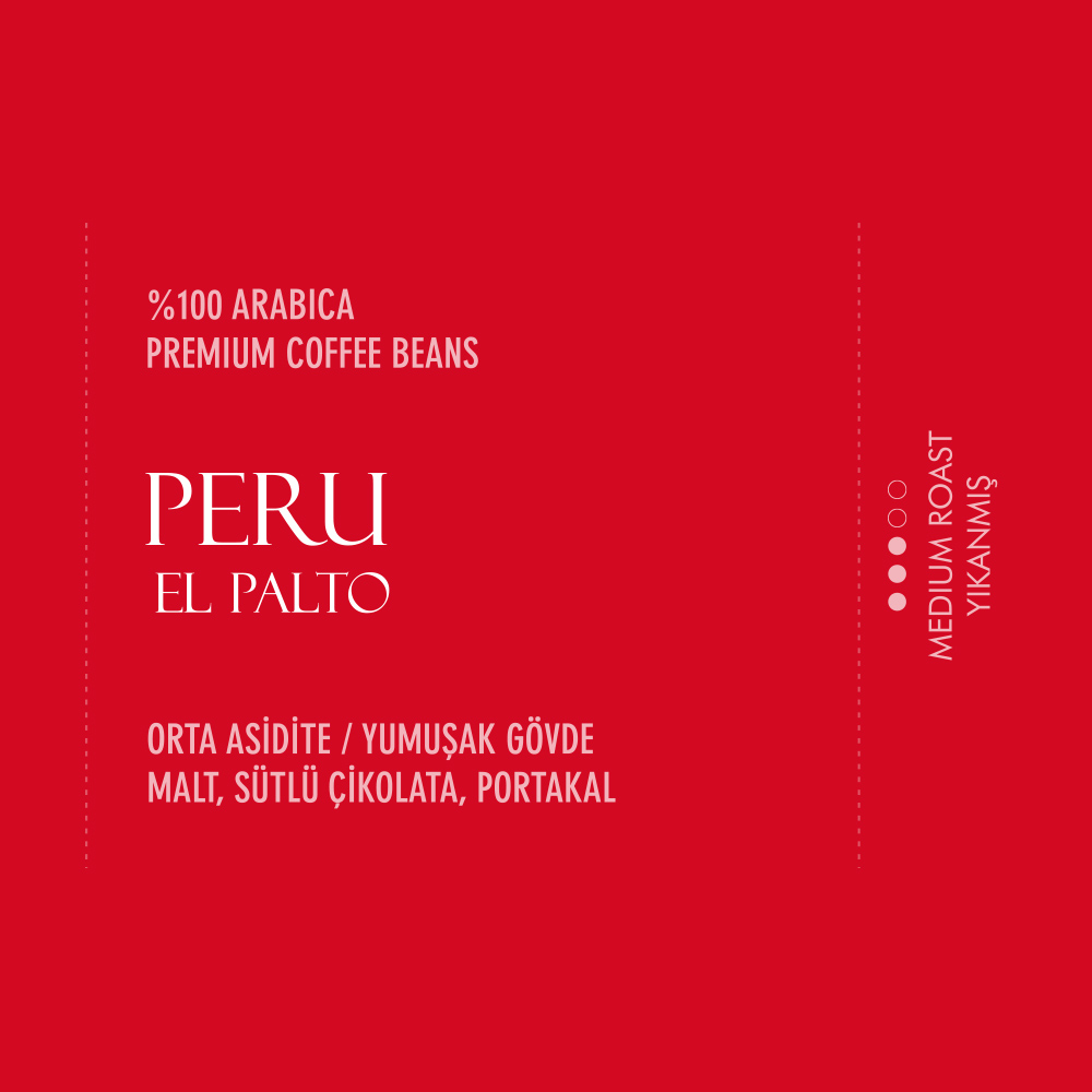 Coffeebou Peru El Palto Filtre Kahve, verimli kırmızı topraklardan oluşan platolarda volkanik dağ eteklerine, dünyanın dört bir yanındaki iyi tarım sertifikalı çiftliklerden tam vaktinde hasat edilen ve özenle seçilen premium quality kahve çekirdeklerimiz karakteristik yapılarına göre özel işlemlerden geçirilmiş , her biri için ayrı kavurma profili uygulanmıştır.